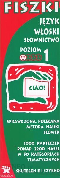 Pierwszy poziom kursu „Słownictwo” zawiera blisko 2400 słów i zwrotów. Ta baza leksykalna przyda się zarówno osobom rozpoczynającym naukę języka włoskiego, jak i tym, które chcą gruntownie powtórzyć podstawy słownictwa. W nowym wydaniu kartoniki ponumerowano, tak by możliwa była jednoczesna nauka z FISZEK i nagrań dźwiękowych (kurs w wersji audio dostępny oddzielnie).